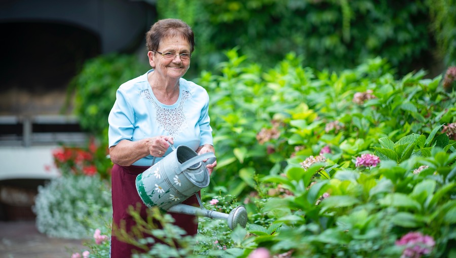Marija Golja zavzeto in z veliko ljubeznijo ureja čudovit vrt Kendovega dvorca.